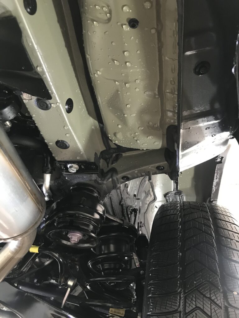 Zdjęcia przedstawiają zabezpieczoną płytę podwozia Tectylem Valvoline w Auto Centrum Wyszyński: